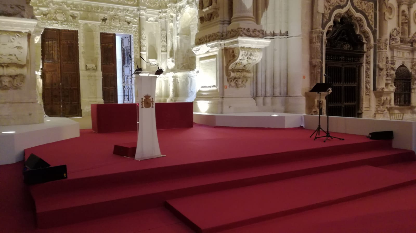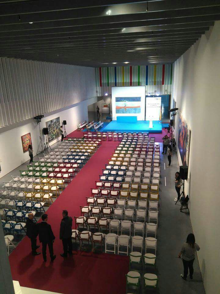 Colaboración en: Suministro y montaje de escenario principal, zona prensa, mobiliario y moquetas para las distintas áreas