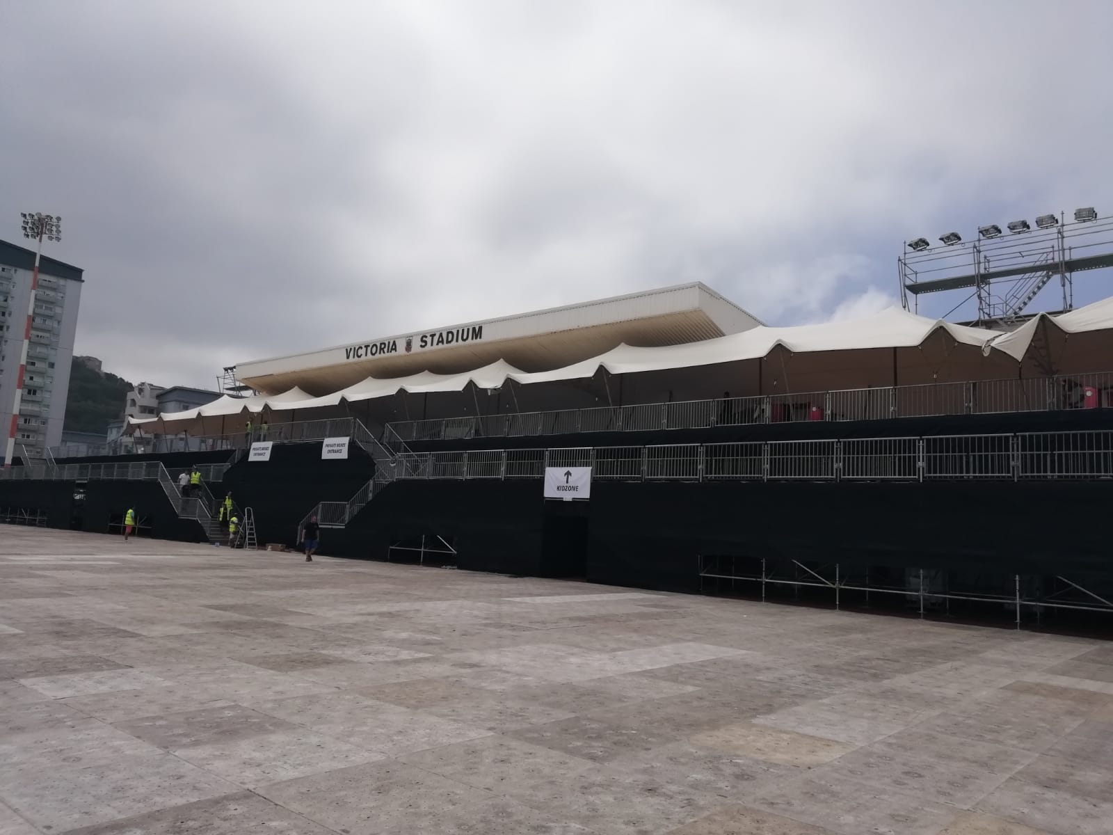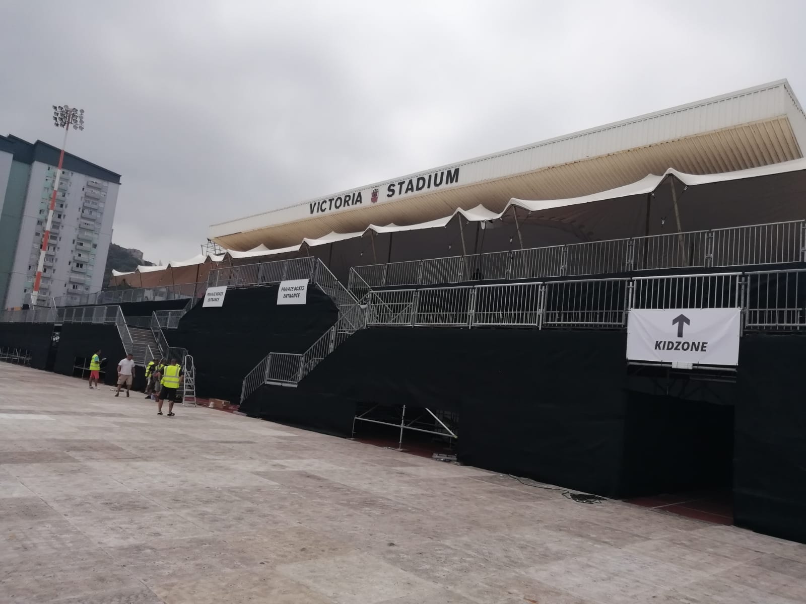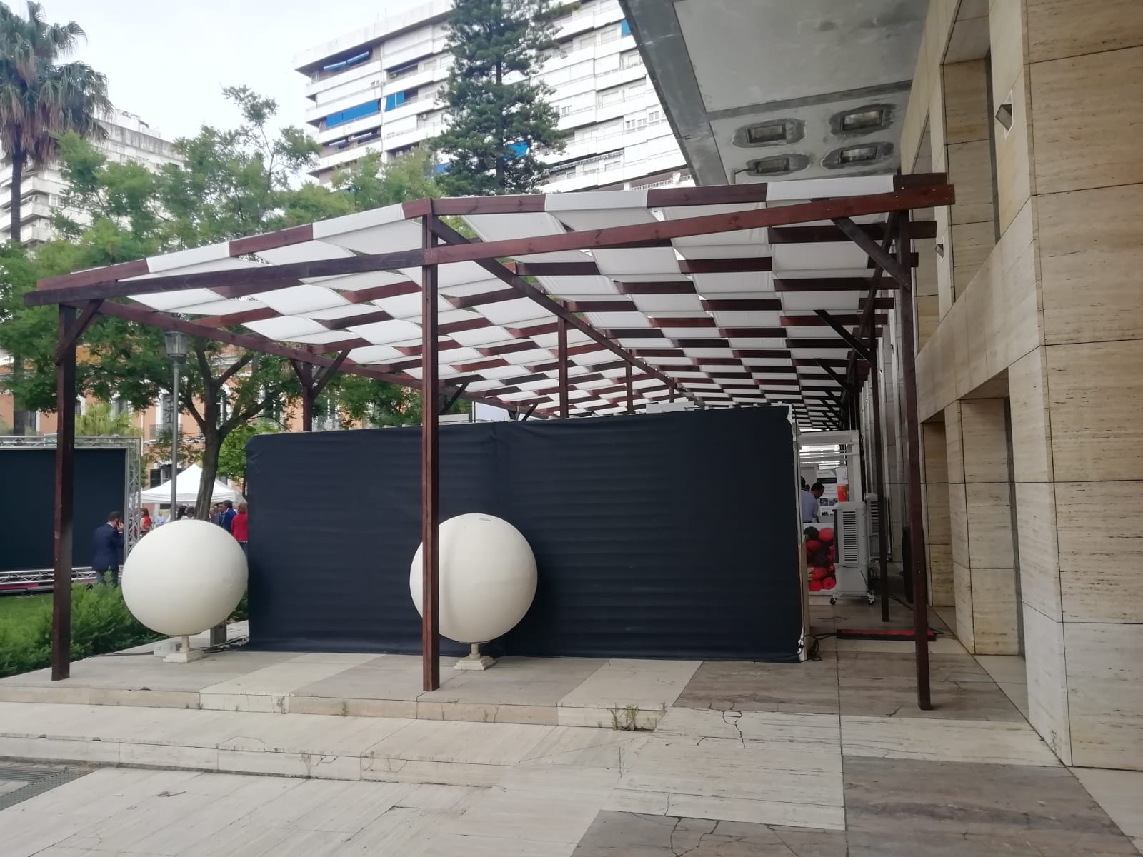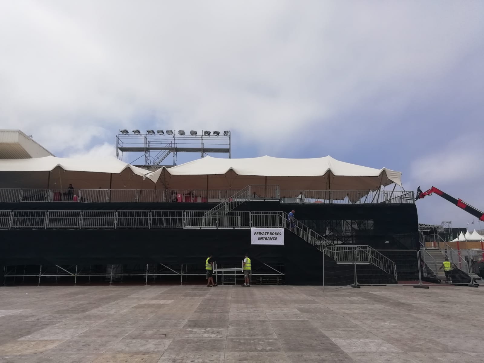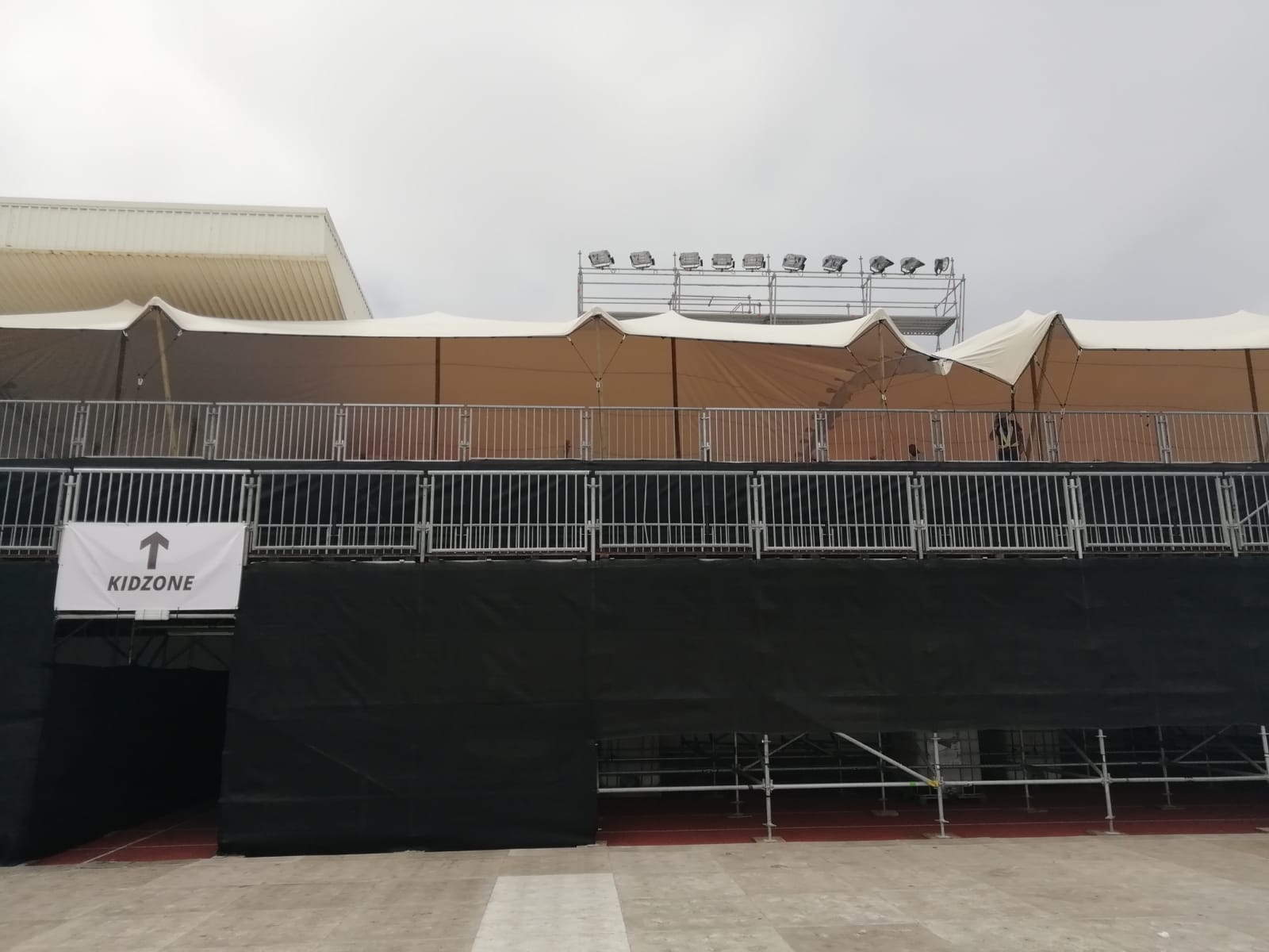 Colaboración en: Suministro y colocación de las distintas gradas y áreas de moquetas, carpas elásticas y jaimas