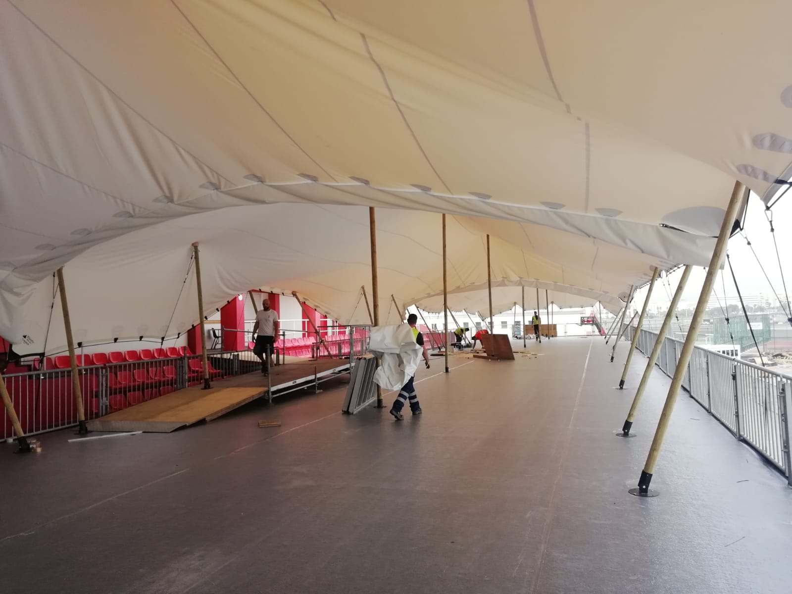 Proporcionamos todo lo relacionado con el montaje de carpas (jaymas, carpas elásticas,…) escenarios, moquetas, artes gráficas, iluminación, stand de diseño y básicas. Todo ello con equipos con gran experiencia y altamente cualificados que resuelven cualquier dificultad o ampliación de las necesidades del evento.